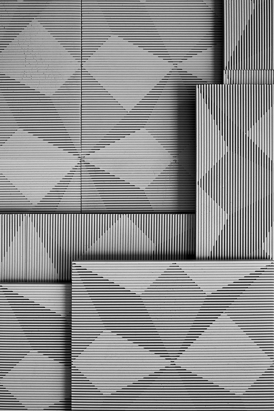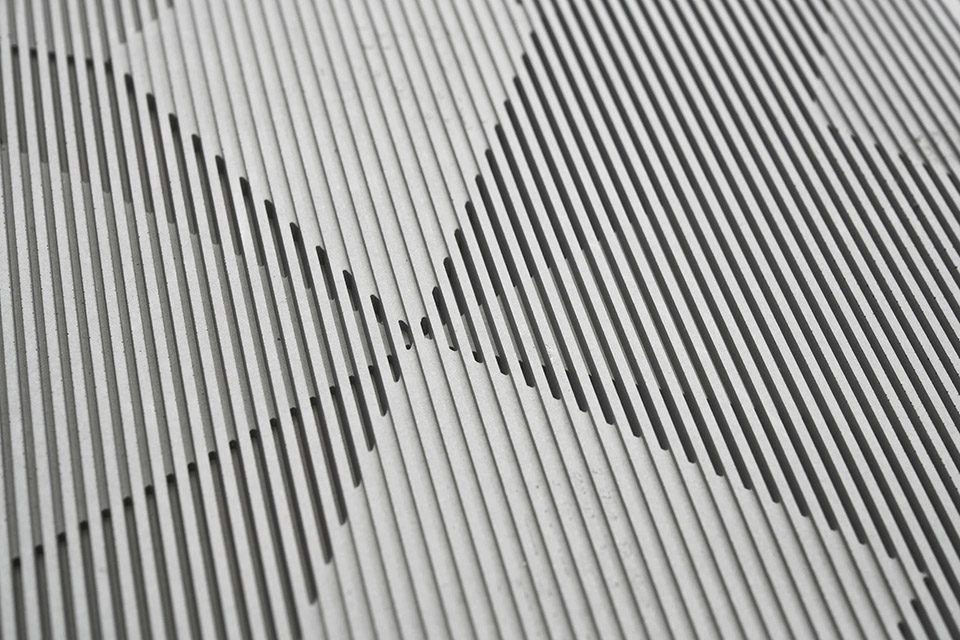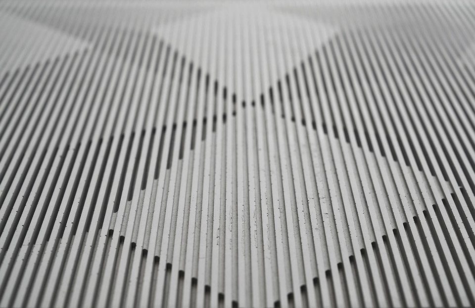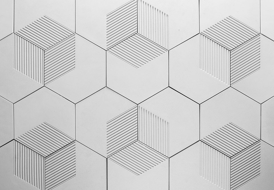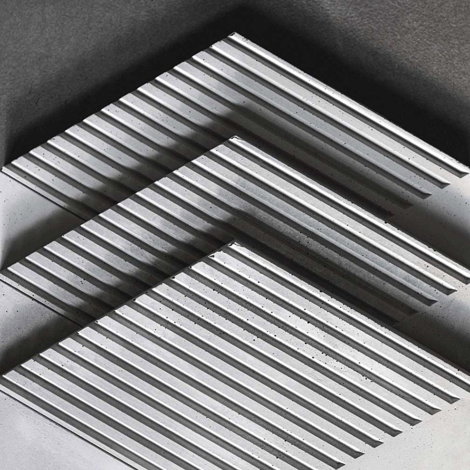 市面上的常规墙砖一般是利用颜色或直接设计起伏的立体表面来营造三维效果。“影”从不同的角度出发,利用水泥高可塑性的材料特质,将立体结构融于墙砖平面中。利用光在墙砖的二维平面上折射形成的阴影深浅来营造立体感,为装饰性建材产品提供更丰富的发展方向。
