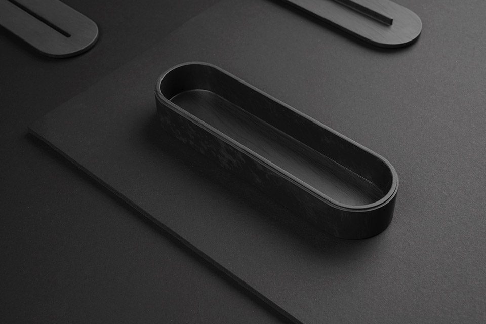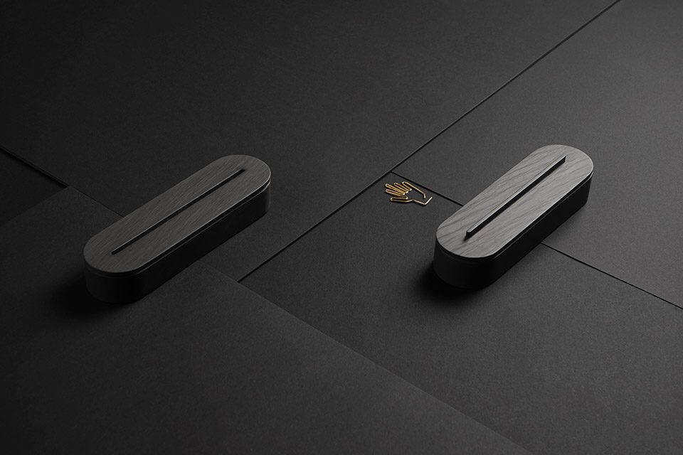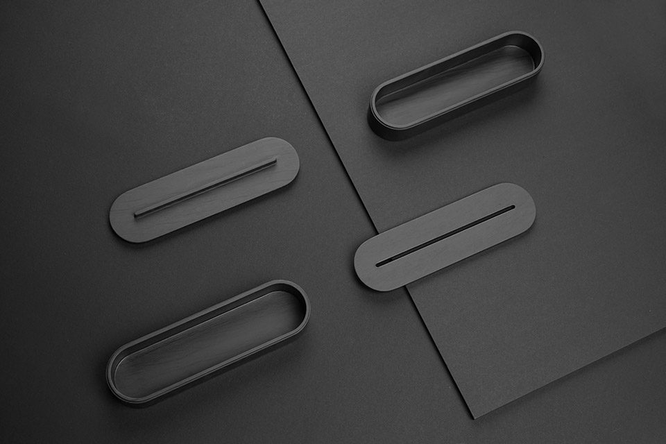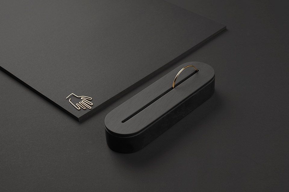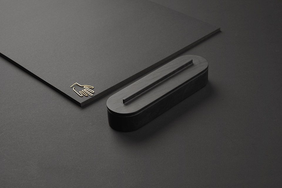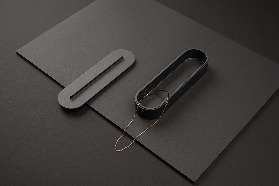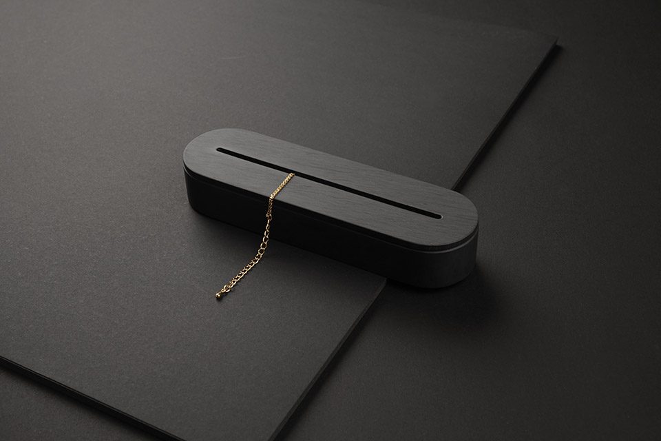 Ink 砚石首饰盒,大形为几何胶囊形,顶盖分为镂槽盖及把手盖共两款。把手的突起与镂槽 都可影响视觉上的光影关系,丰富层次。